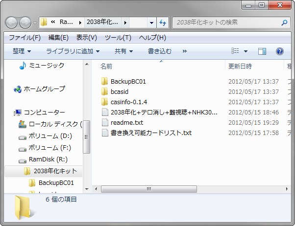 6.BackupBC01.exeを起動「2038年化+テロ消し+難視聴+NHK30+狐.txt」を選択