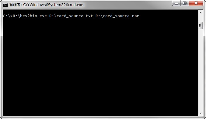 hex2bin.exe card_source.txt card_source.txtとコマンド内にドラッグ