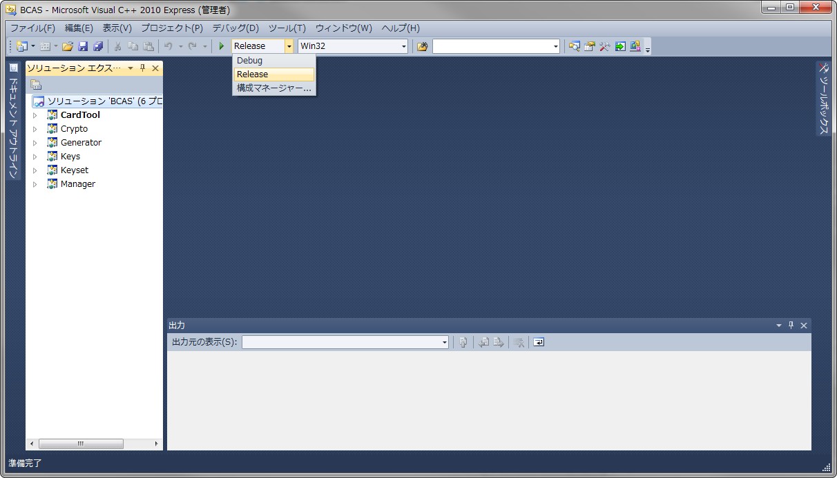 4.BCASフォルダ内のBCAS.slnをダブルクリックしVisual C++ 2010で開く