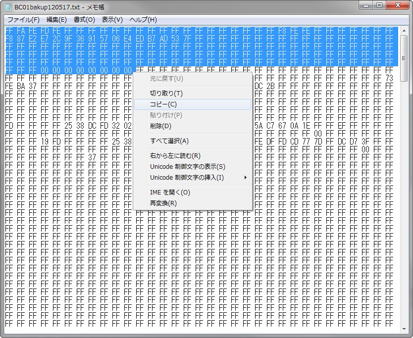 4.BackupBC01.exeで作成されたバックアップ「BC01bakup120517.txt」をメモ帳で開く