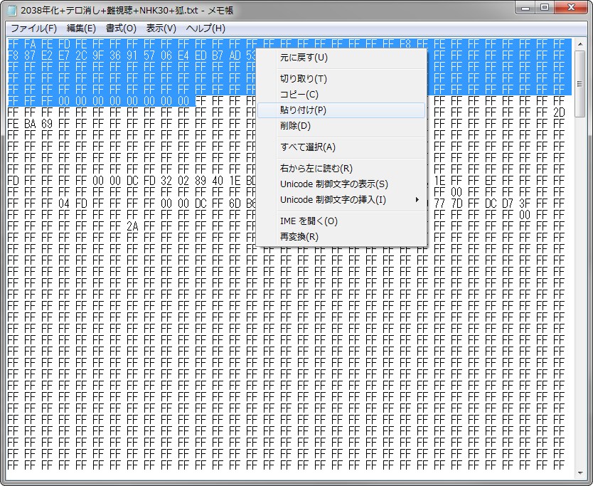 5.BackupBC01フォルダの「2038年化+テロ消し+難視聴+NHK30+狐.txt」を開く