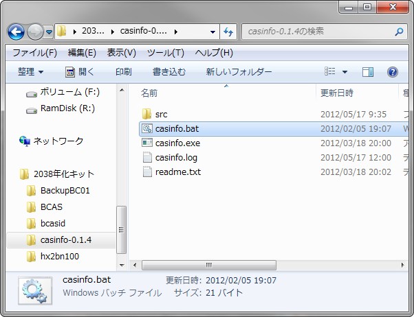 7.casinfoフォルダのcasinfo.batをクリック