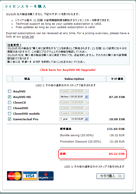 AnyDVD HD 永久版 20%off 84.22EUR 10,084円